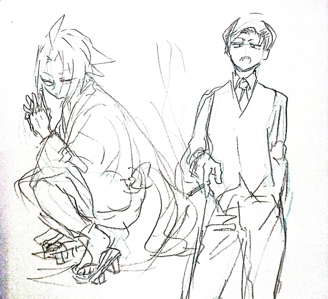 何となく893感増すかなと好奇心で政さんにネクタイ描いたらやはり増してしまったポーズ練rkgk。